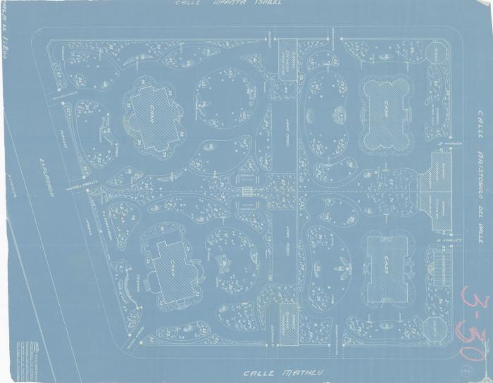 - terraza , estatua , lawn tennis , jarrón , gimnasio , explanada , banco , veredón interior , exterior; entrada principal , entrada 2ª , plazoleta , plataforma , balaustrada , gallinero , exedre , casa , kiosco , conservatorio , plaza juego , objeto(?) de arte , garage , cochera jardinero