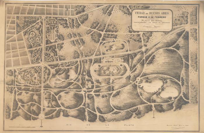 Ciudad de Buenos Aires. Parque 3 de Febrero. Plano General. Comprendiendo las obras de ensanche proyectadas y ejecutadas por Carlos Thays. Ingeniero-Paisajista. Director General de Parques y Paseos Públicos.