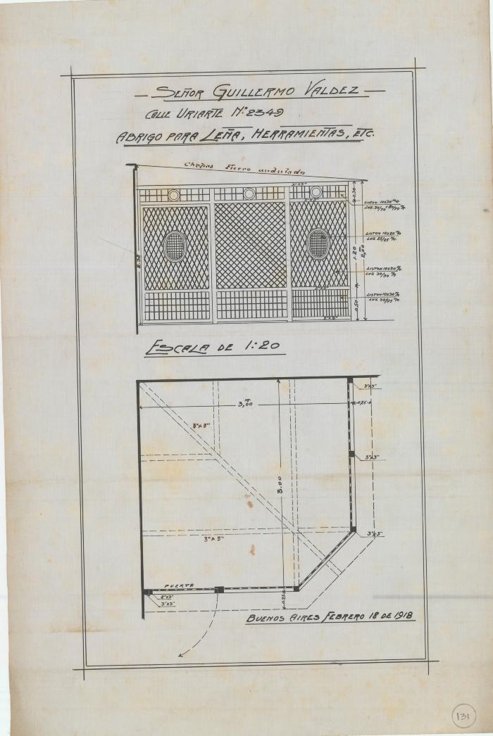 "Señor Guillermo Valdez Calle Uriarte Nº 2349 Abrigo para leña, herramientas, etc. "