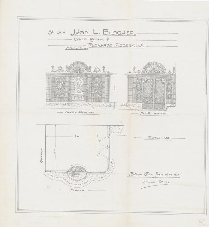Sr Don Juan L. Blaquier. Avenida Alvear nº . Treillage decorativo. Frente al garage