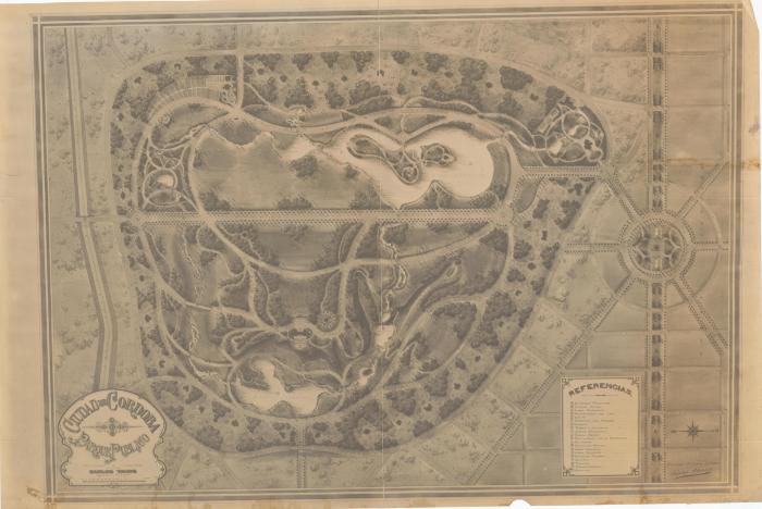 Ciudad de Córdoba. Parque Público. Proyectado y ejecutado por Carlos Thays. Ingeniero - Paisajista. Con escala gráfica 1.
